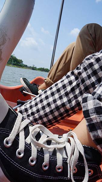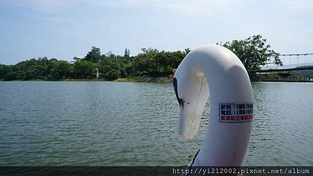 TJ此趟來是為了實現我的情侶間想一起完成的事項之一:踏天鵝船,哈!一小時200元,我們得到了這隻小白天鵝,享受著波光粼粼的美景,以及微風吹來的徐徐涼意,出乎意料的好好玩歐!