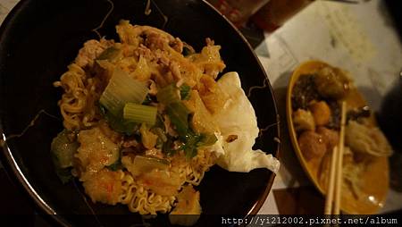 看!我們的2碗炒泡麵+1大盤黑輪,只要175元~話說店外的紛紅色紙箱的統一肉燥麵一箱箱的如同疊疊樂,一箱箱的抽走,經過加料後進入到大家的胃裡,這真是一到神奇且受歡迎的料理,經由加料後把我們平常熟悉的泡麵經由妝點後變身出現在眼前,令人食指大動,還有一顆太陽蛋,只要用筷子戳破,蛋液緩緩流出,和麵增添香氣好好吃!