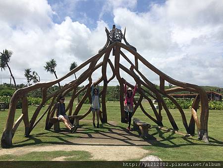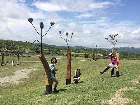 免費的伽路蘭遊憩區,距離台東市區約15分鐘左右,過了富岡漁港沒多久就到了,這裡不是非常大,大草皮上散落一區區的公共藝術,拍照時就倚著它們就對啦!