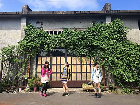 從好的擺小店往上走一些,有間稍大的廠房有兩大塊木門,上面佈滿了綠色藤蔓植物還開了小花,拍起來也頗有味道,不過台東的太陽好大呀!眼睛得用力些才張的開來~