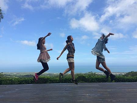 小棧前方有個木棧平台,向前望去可以俯瞰都蘭也看的見海景,天際線和海際線都分不清了,超適合用力一躍,反正店休沒人呀!盡情跳了好幾張~