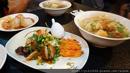 店裡的招牌就如店名是排骨酥系列麵食,還有蝦仁肉圓跟一些湯品,生意不錯。