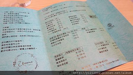 這是菜單,小店裡主要供應鹹派、甜點和有機果茶。