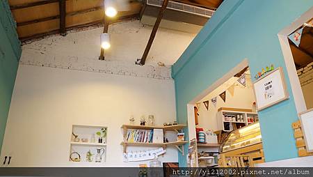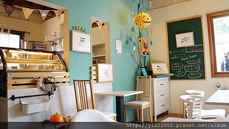 白色的桌椅和水藍色的牆面是主要的顏色,清新之中不失小童趣小可愛,一如圍著圍裙頂著鮑伯頭,有著骨碌碌大眼睛的女主人一般。
