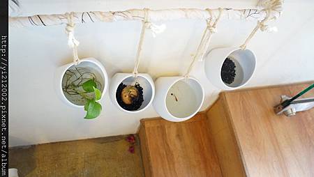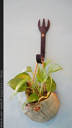 噢!我座位的右手邊掛上了個小植栽,掛勾是小鐵叉造型。