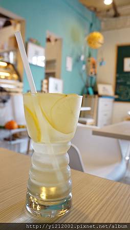 我們選了兩個鹹派加飲料的套餐,有機黃檸檬水先清涼上桌,飲料裡有檸檬的清香。