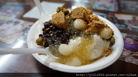 第一次吃麥芽酥冰,以雪花冰作為基底,加上豆類、粉圓、珍珠和湯圓,最後再放上幾塊口齒留香的麥芽酥。