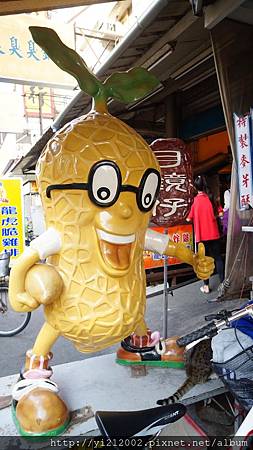店門口有一尊笑的開懷帶著眼鏡,左手比讚,右手抱著花生仁的土豆仔,我想他大概是店裡的吉祥物吧!