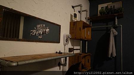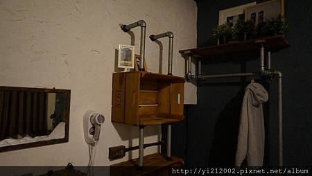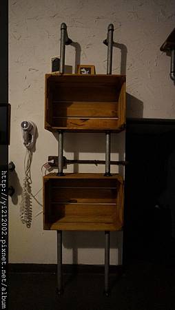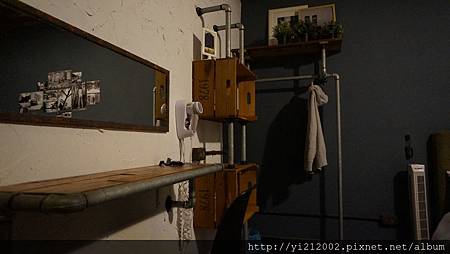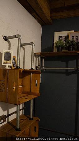 以水管和木箱組合而成的櫃子,就是房間DIY的最好示範,材料取得不難,效果一級棒!不過木櫃沒另外處理過,保有粗糙的觸感。