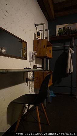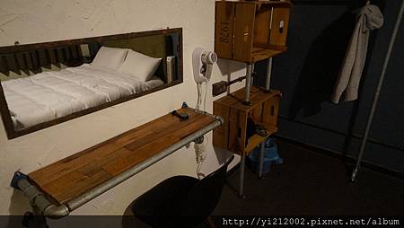 從牆壁延伸出來小桌子也是用水管和木板製成,真想認識規劃TOMER房間的設計師,哪來這麼多巧思。