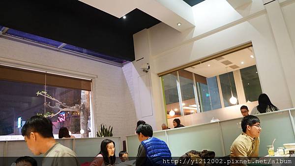一進入店門,就看見非常多人正在享用晚餐,場上的服務人員數也不少,整個空間算是挑高,我們的用餐位置被安排在右二服務人員正在收拾的那桌。