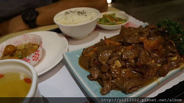 然後TJ點的炒牛肉套餐,一上桌時確實有被主菜的份量嚇到,給好多唷!牛肉也炒的粉嫩粉下飯。