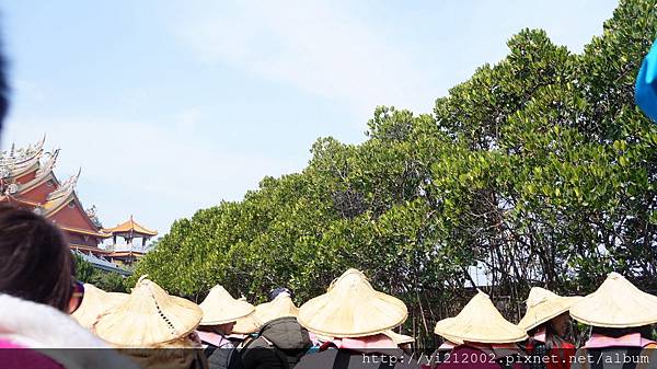 買了一人200元的四草紅樹林綠色隧道船票,穿上救生衣,搭上膠筏,準備好瀏覽這傳說中的美景;這照片中的斗笠是船家準備的,沒帶遮陽配備的人就可以借來戴,下船時在連同救生衣歸還。