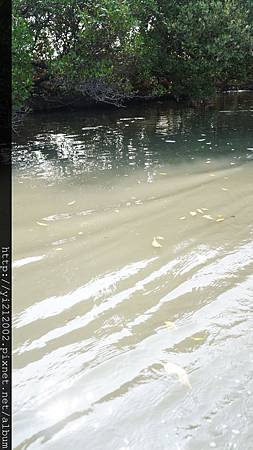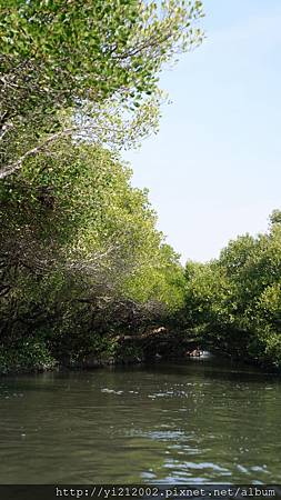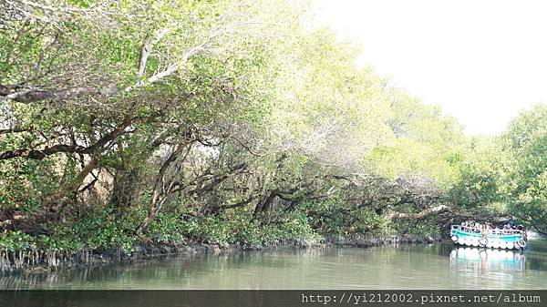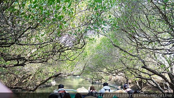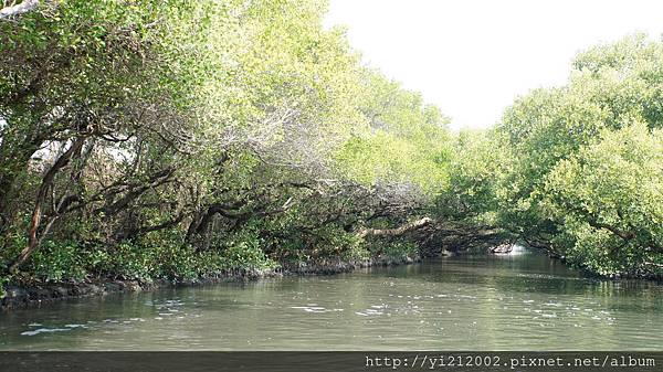 由兩旁紅樹林向河道中央長,形成了天然的綠色隧道,樹和水面都是綠色,彼此又相映照著,加上陽光普照,水面波光粼粼,就像是在看印象派的畫作一樣。