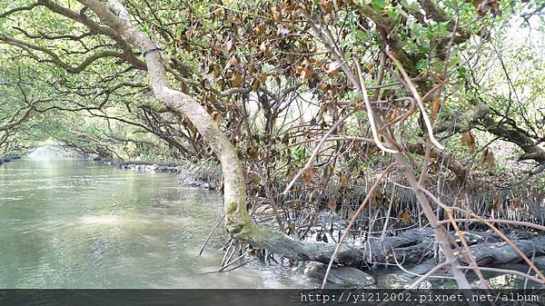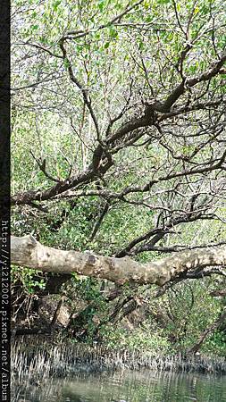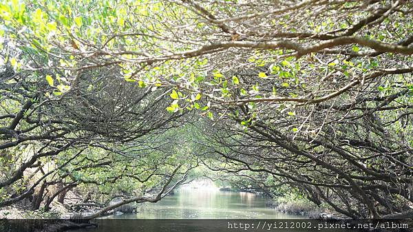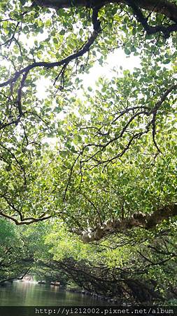 綠色隧道裡的樹幹曲折有勁,像是國畫裡用筆墨勾勒出來一般,但水面和樹葉的色彩又像是莫內一撇一撇畫上,算是中西美學的融合吧!非常有現代藝術的特點耶!哈!