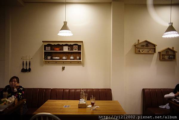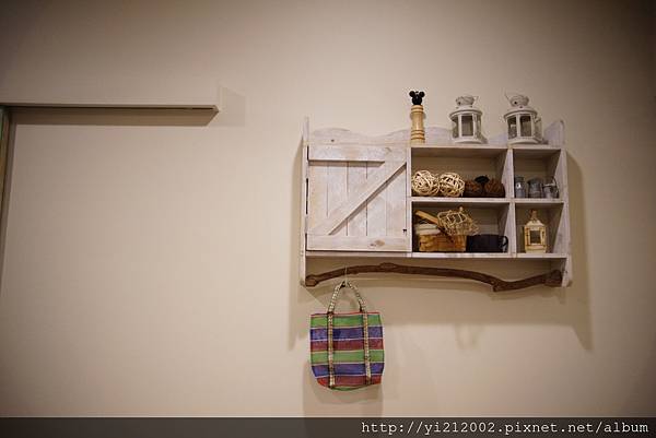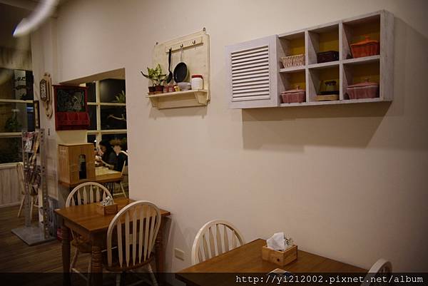 踏進店內可以看見白色的牆面、牆上算是鄉村風格的佈置,以及打通分戶牆的出入口。