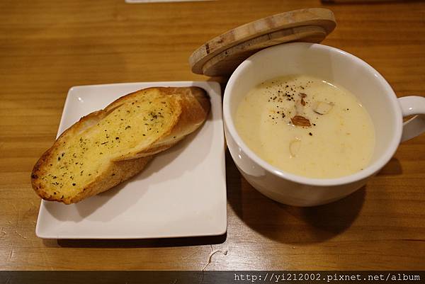 義大利麵的附餐,大蒜麵包及濃湯,記得濃湯的奶味頗濃郁。