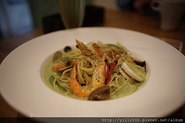 TJ點的海鮮漁夫義大利麵,老闆下的海鮮不會小氣,給的麵量也算多,我有吃兩口。