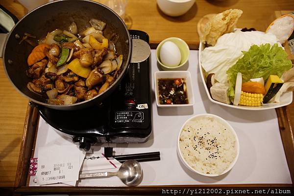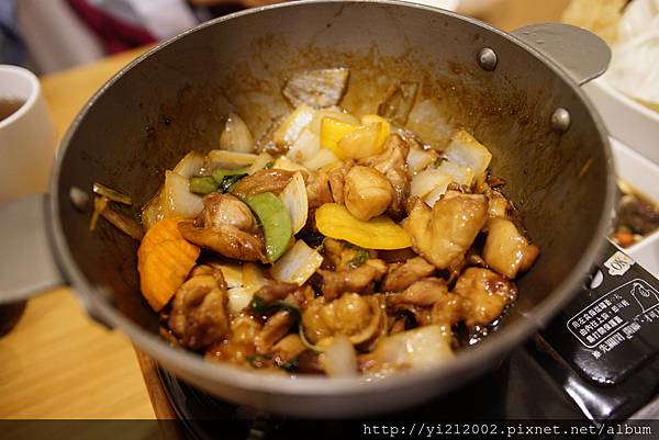 吃到一半左右再請店員幫忙加高湯再加上附的菜及料,頓時就成火鍋了,乾吃時的口味稍重也許是要配合後續成為火鍋,有了煮湯的加持,湯除了原本的醬燒味道還多了菜甜,然後三杯時放下的薑味也煮出來了,成為很多味道的湯,個人覺得雞肉在乾吃時比較嫩且有味道,濕吃時因再煮過,肉質變柴且味道淡許多,不過這樣吃份量還滿多,吃完有點撐。