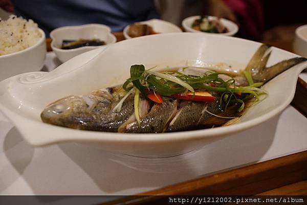 這道是樹子清蒸魚,忘了魚的名字,可是記得魚的肉質細軟,簡單的清蒸後放蔥淋油,配飯覺得好吃。