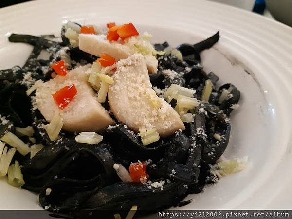 有趣的是,墨魚麵一上桌,我以為上方白色橢圓切片是章魚,
