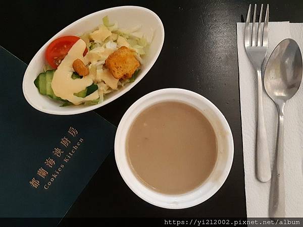 餐點以套餐方式出餐,附有沙拉及濃湯,
